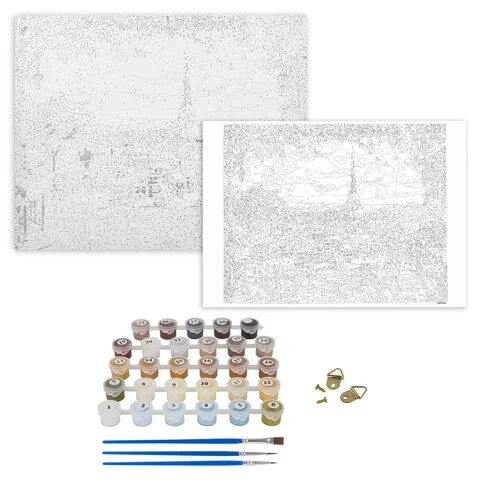 | Комплектация | акриловые краски, кисть, крепеж, лист бумаги для тренировки, холст на подрамнике |