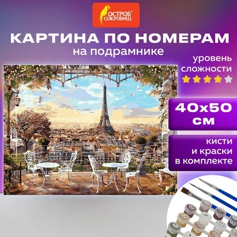 Картина по номерам 40х50 см ОСТРОВ СОКРОВИЩ 'Париж', на подрамнике, акриловые краски, 3 кисти, 66246