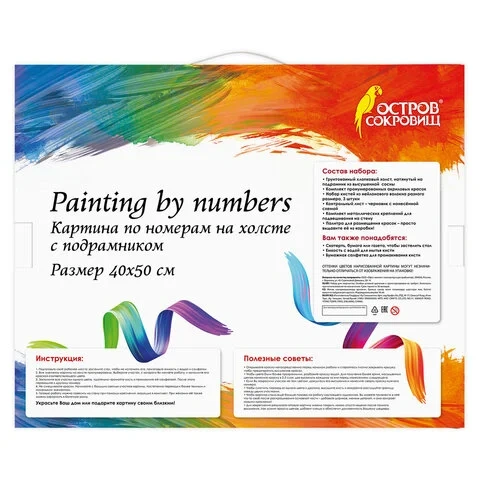 | Комплектация | акриловые краски, кисть, крепеж, лист бумаги для тренировки, холст на подрамнике |