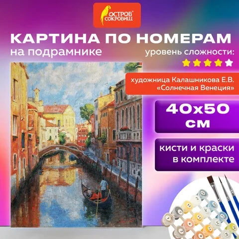 Картина по номерам 40х50 см, ОСТРОВ СОКРОВИЩ 'Солнечная Венеция', на подрамнике, акрил, кисти, 66291