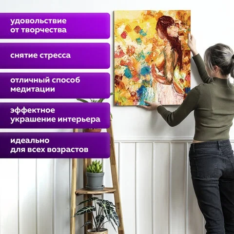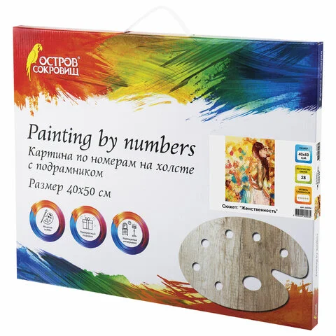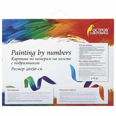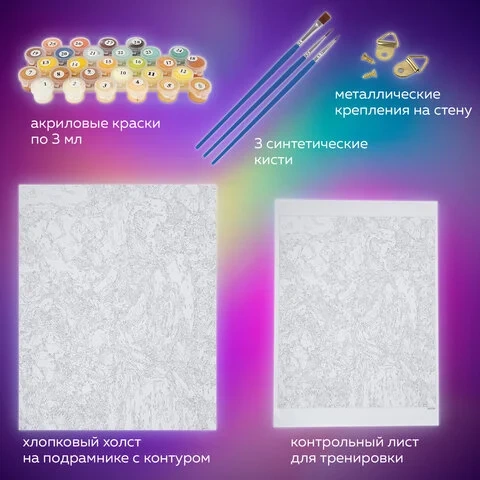| Комплектация | акриловые краски, кисть, крепеж, лист бумаги для тренировки, холст на подрамнике |