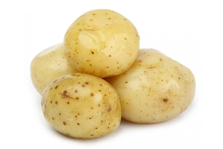 Свежие картофельные клубни, очищенные от кожуры и отваренные целиком с добавлением соли. Отлично подойдут для приготовления салатов. Картофель богат витаминами группы B, калием, кальцием, железом, натрием, фосфором. Он способствует нормализации пищеварения, помогает очистить организм от лишней воды, снижает риск развития атеросклероза и сердечной недостаточности. Разогрейте картошечку в духовке или микроволновой печи и подавайте в сочетании со слабосоленой селедкой, овощами или сочными мясными колбасками, обжаренными на гриле.