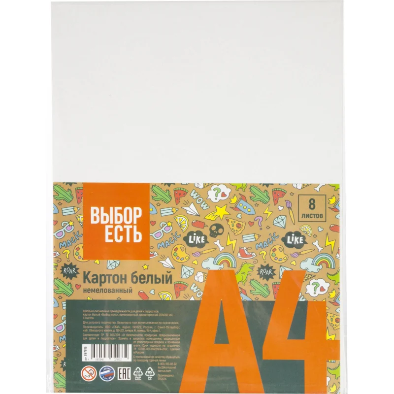 Картон белый № 1 School (Выбор есть) Отличник (А4, 8 листов, немелованный)