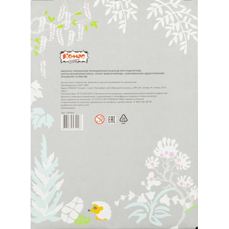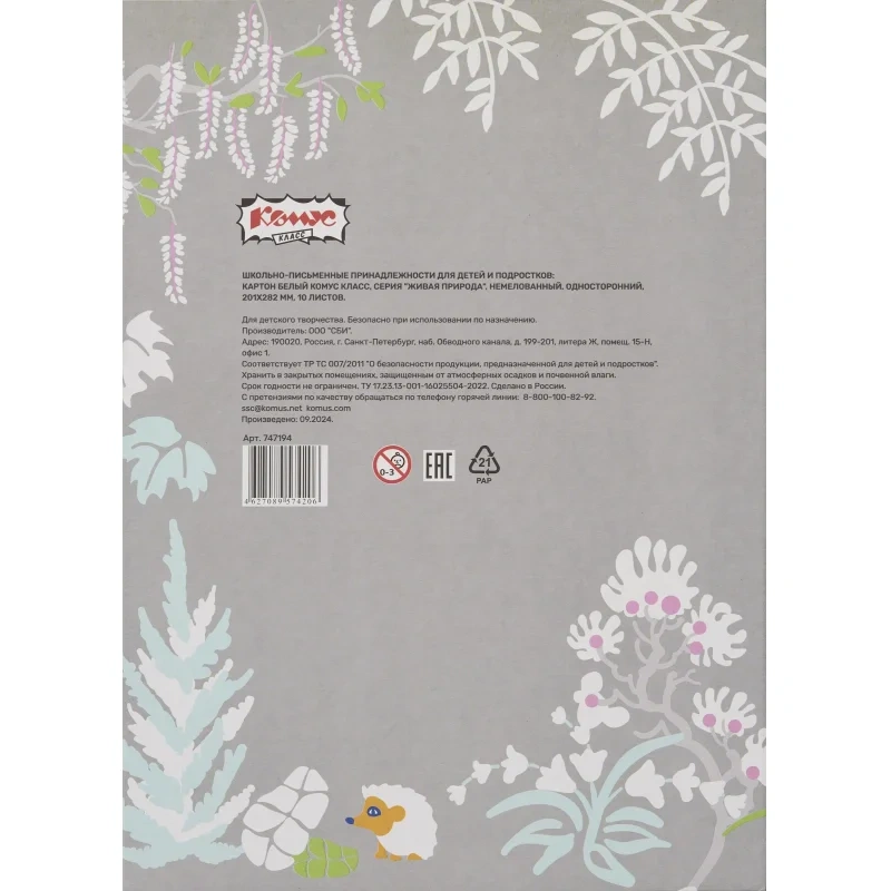 Картон белый Комус Класс (№ 1 School) Живая природа (A4, 10 листов, немелованный)
