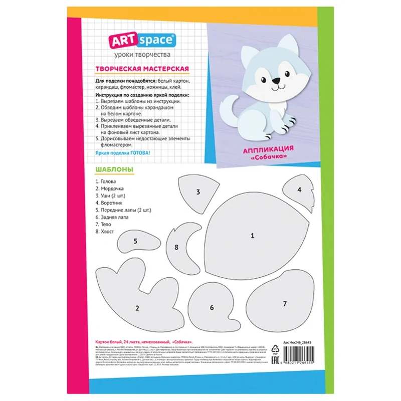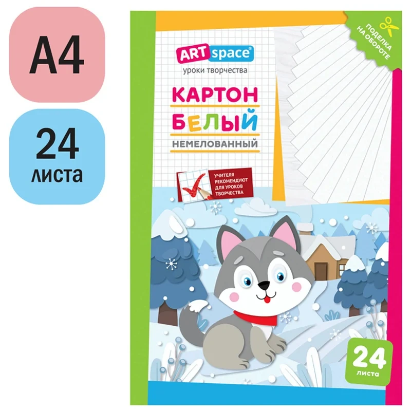 Картон белый A4, ArtSpace, 24л., немелованный, в папке, 'Собачка'