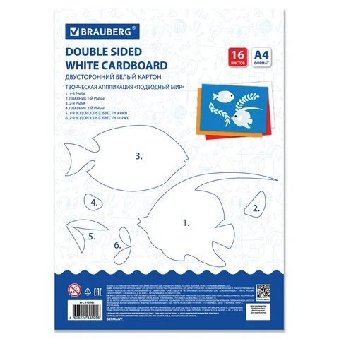 Мелованный картон обладает плотностью 200 г/м2, имеет гладкую, идеально белую (глянцевую) поверхность с одной стороны и белую матовую поверхность с оборота. Его можно использовать как для поделок, так и для рисования, а также в качестве основы для аппликаций. С помощью этого картона ребенок сможет воплотить в жизнь любую творческую задумку. В наборе 16 листов двустороннего картона белого цвета формата А4 (200х290 мм). Творческая инструкция по созданию аппликации на обороте.