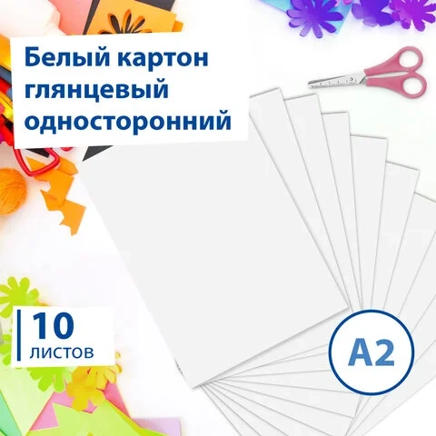 Картон белый Brauberg 10 листов, А2, плакатный, мелованный