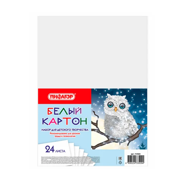 Картон белый Пифагор Совушка 24 листа, А4, немелованный