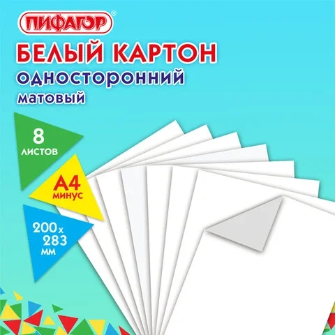 Картон белый Staff 8 листов, А4, 200 г/м2