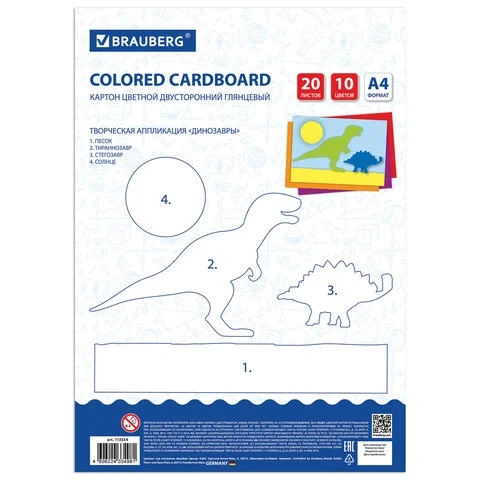 Двусторонний целлюлозный мелованный картон BRAUBERG с улучшенной прокраской обладает плотностью 200 г/м2, имеет глянцевую поверхность с одной стороны и матовую с другой, благодаря чему сохраняет четкость, яркость и насыщенность оттенка на протяжении длительного времени. Картон легко режется ножницами, сгибается и клеится. Внутренний блок закрашен с двух сторон и состоит из 20 листов формата А4 и 10 цветов. Картон вложен в красочную картонную папку, которая имеет дополнительный нижний клапан, благодаря чему листы не выпадут и не помнутся.