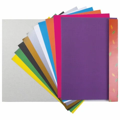Немелованный картон с улучшенной прокраской обладает плотностью 200 г/м2. Легко режется ножницами, сгибается и клеится. Внутренний блок состоит из 10 листов формата А4 (200х290 мм) и 10 цветов.