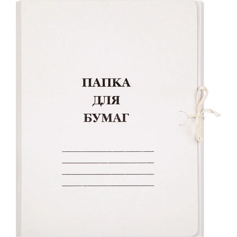 Папка для бумаг формата А4 с завязками, упаковка из 20 штук. Изготовлены из немелованного картона белого цвета (плотность 260 г/кв. м), на лицевой стороне есть поля для подписывания. Вместимость — до 200 листов стандартной плотности. Папка картонная на завязках внутри оснащена тремя клапанами, благодаря которым документы не выпадают. Размер изделия — 225×20×315 мм.Картон — экологически чистый и пригодный для переработки материал.