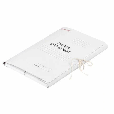 Картонная папка на завязках Brauberg белая, А4, до 200 листов, 320г/м2