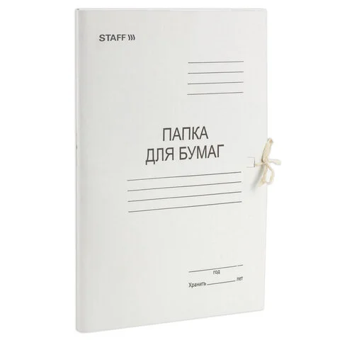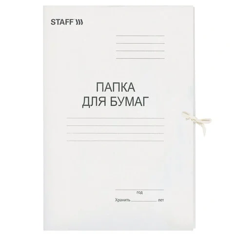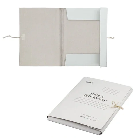 Картонная папка на завязках Staff белая, А4, до 200 листов, 310г/м2