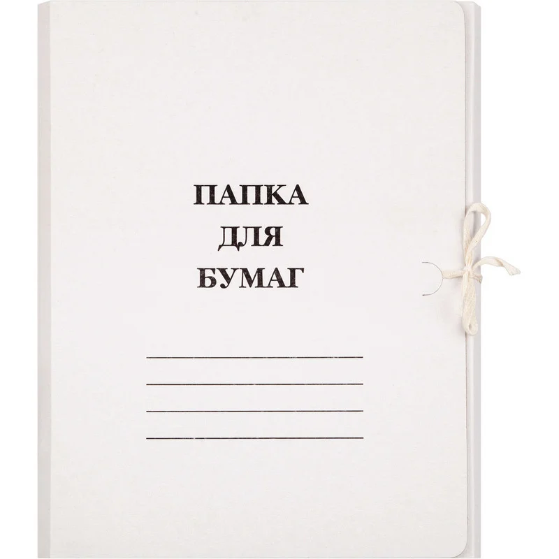 Картонная папка на завязках белая, А4, до 200 листов, 380г/м2, 10 шт/уп