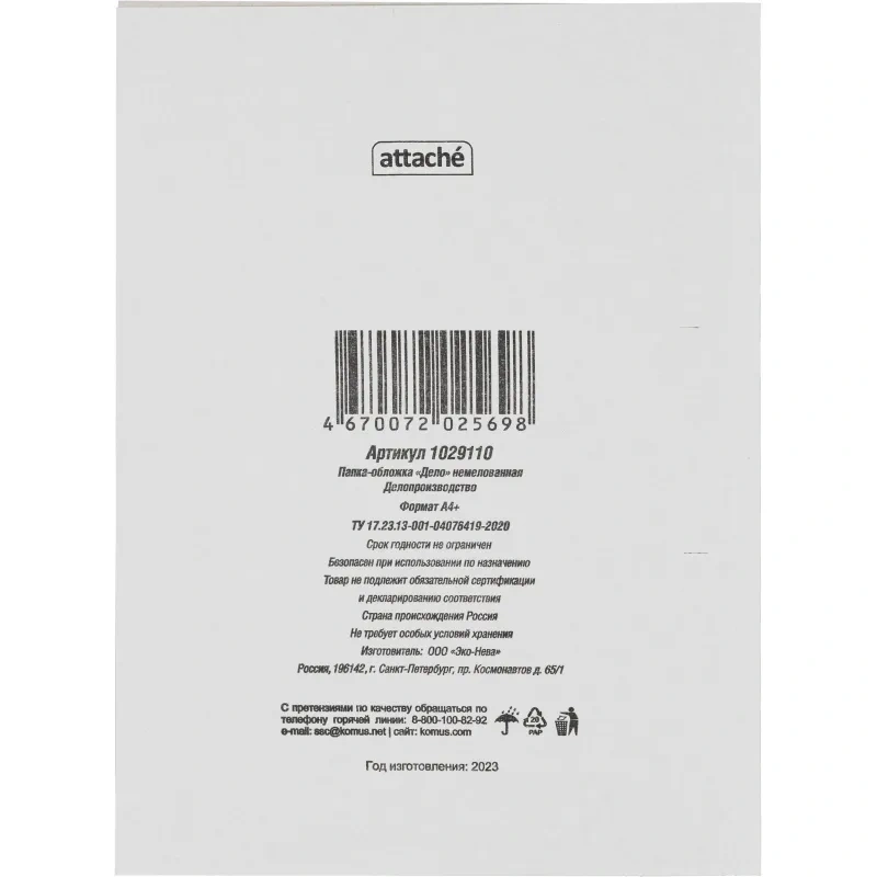 Картонная папка на завязках Attache белая, А4, до 200 листов, 380г/м2