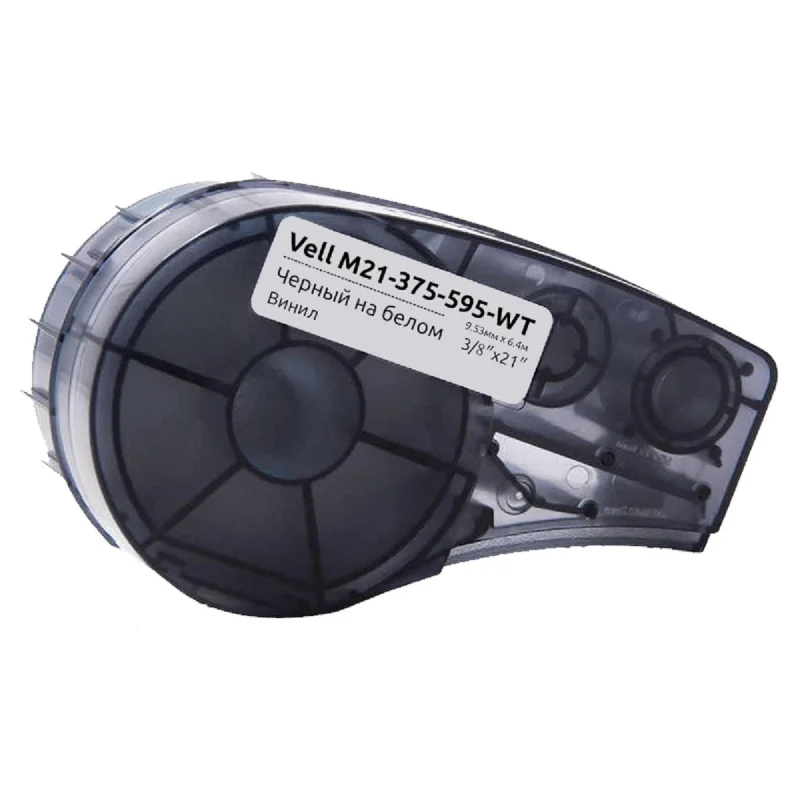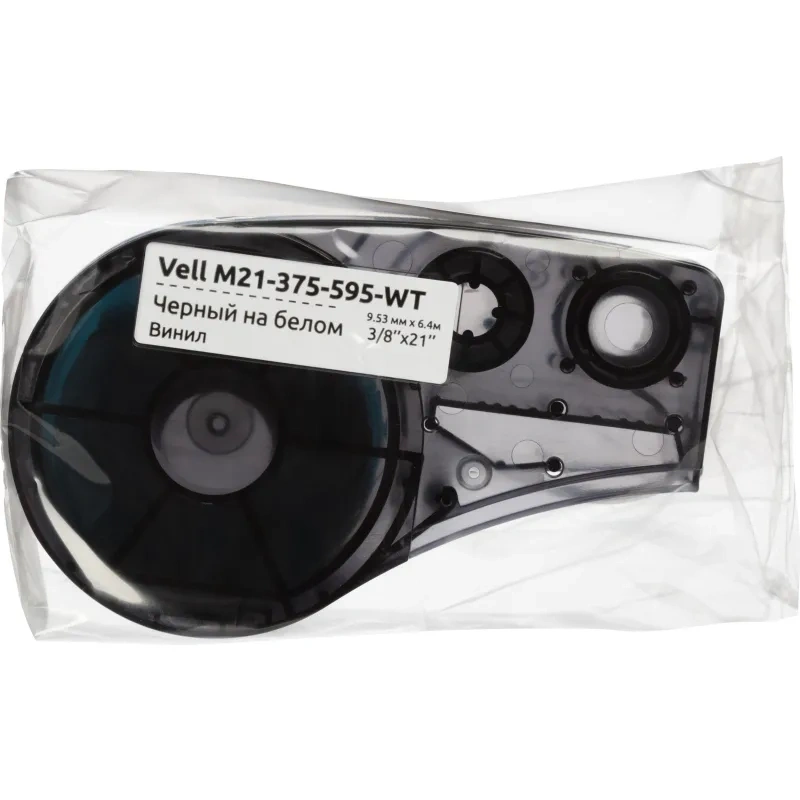 Картридж для принтера этикеток Vell M21-375-595-WT, 9.53мм x 6.4м, белый с черными буквами