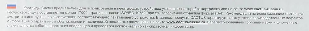 Компания CACTUS гарантирует стабильную работу всей своей продукции в течение 12 месяцев с момента приобретения при соблюдении условий эксплуатации.