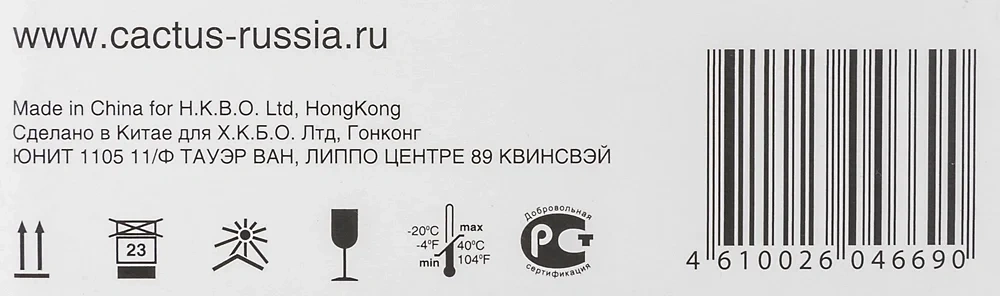 Компания CACTUS гарантирует стабильную работу всей своей продукции в течение 12 месяцев с момента приобретения при соблюдении условий эксплуатации.