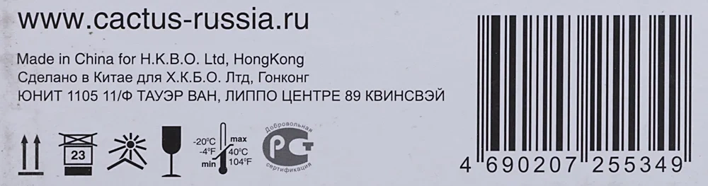 Компания CACTUS гарантирует стабильную работу всей своей продукции в течение 12 месяцев с момента приобретения при соблюдении условий эксплуатации.