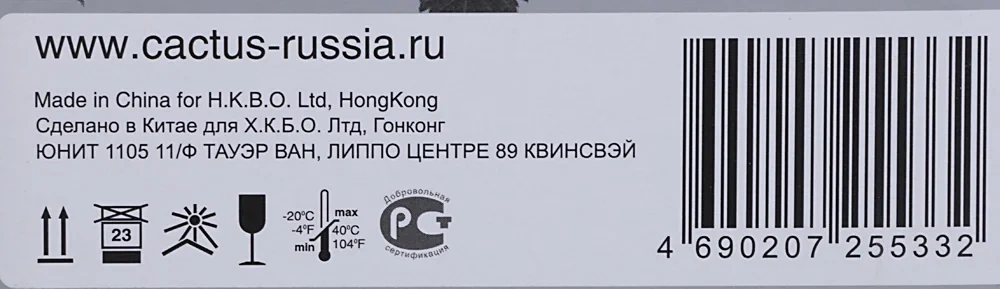 Компания CACTUS гарантирует стабильную работу всей своей продукции в течение 12 месяцев с момента приобретения при соблюдении условий эксплуатации.