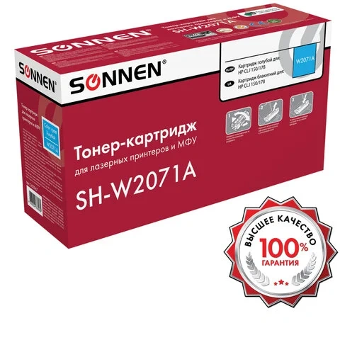 Картридж лазерный SONNEN (SH-W2071A) для HP CLJ 150/178 ВЫСШЕЕ КАЧЕСТВО, голубой, 700 страниц, 36396