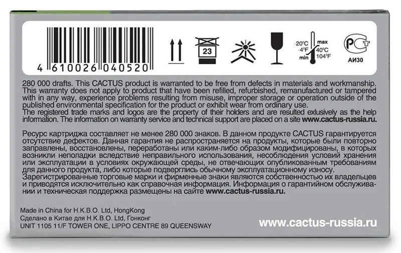 | Особенности | ресурс картриджа не менее 300 000 знаков |