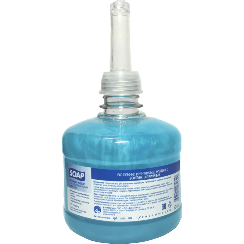 Назначение: жидкое крем-мыло предназначено для применения в дозаторах. Подходит для воды любой жесткости. Путем нажатия выдавить необходимое количество мыла, вспенить, смыть водой. Крем-мыло с антибактериальным эффектом серии 'Флородель' обладает повышенной моющей и очищающей способностью, а также противомикробным действием. Антибактериальный компонент обеспечивает легкий бактерицидный и противовоспалительный эффект, способствует быстрому заживлению ссадин. Мыло может быть использовано при мытье рук и тела как на производстве, так и в быту. Использование жидкого мыла серии 'Флородель' поможет сохранить кожу нежной, мягкой и здоровой. Содержит в составе перламутровые частицы. В составе присутствует пищевой краситель. рН — 5,5–6,5. Цвет голубой, отдушка морская свежесть.