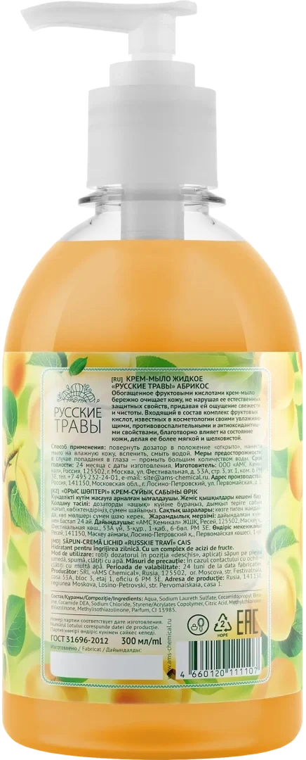 для мытья рук: нанести небольшое количество жидкого мыла на увлажнённые поверхности рук, смыть проточной водой.