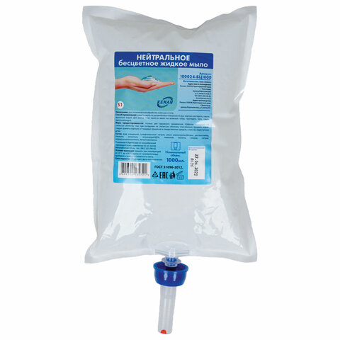 Картридж с жидким мылом одноразовый (Система S1) 'Нейтральное', бесцветное, 1 л, KEMAN, 100024-БЦ100