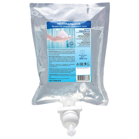 Картридж с жидким мылом-пеной одноразовый (Система S3), бесцветное, 0,8 л, KEMAN, 100028-S3