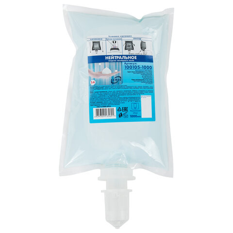 Картридж с жидким мылом-пеной одноразовый (Система S4), 'Нейтральное', синее, 1 л, KEMAN, 100105-100