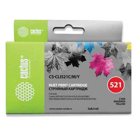 Картридж струйный Cactus CS-CLI521C/M/Y, №521, 8.4мл, 3 цвета