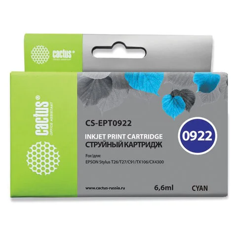 Картридж струйный Cactus CS-EPT0922 №0922, 6.6мл, голубой