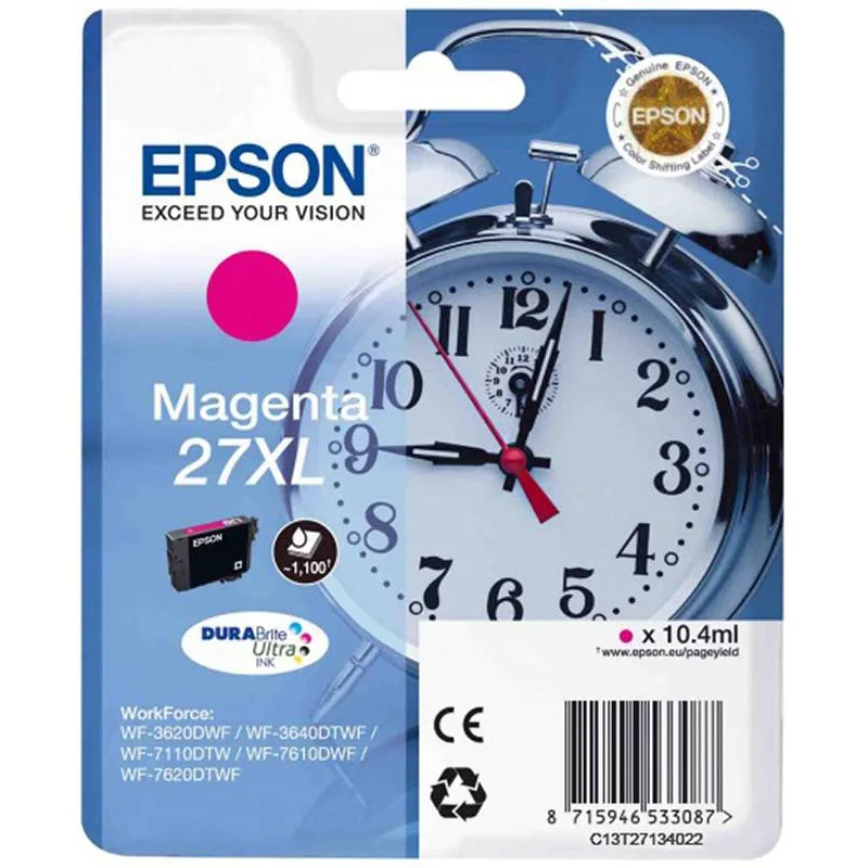 Оригинальные пурпурные струйные картриджи пов.емк. Epson C13T27134022 для принтеров Epson WorkForce WF-3620DWF, Epson WorkForce WF-3640DTWF, Epson WorkForce WF-7110 можно использовать для профессиональной печати фотографий или документов и маркетинговых материалов дома и в офисе. Эти картриджи разработаны для использования с вашим принтером.
