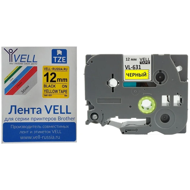 Картридж Vell VL-631 (Brother TZE-631, 12 мм, чер на желтом) для PT Vell631