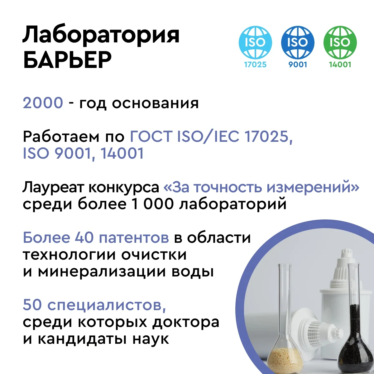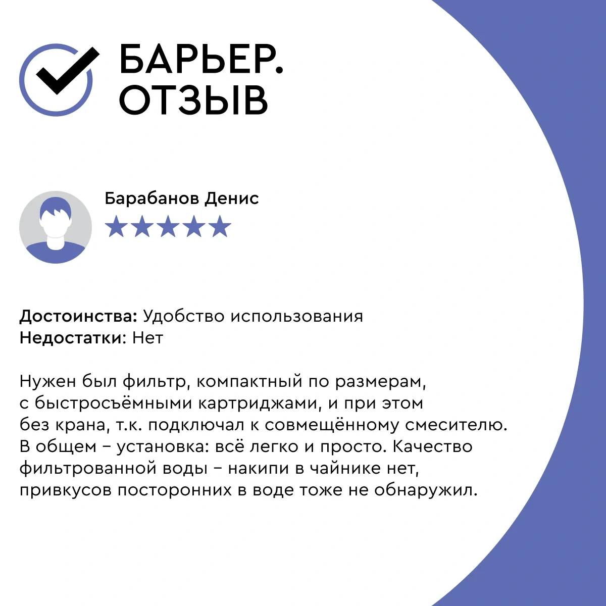 3.'БАРЬЕР ЭКСПЕРТ ПостКарбон' - финишная очистка и кондиционирование, устранение неприятных привкусов и остаточного хлора.