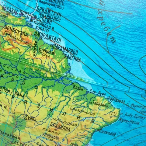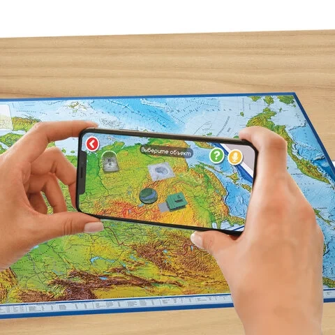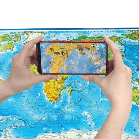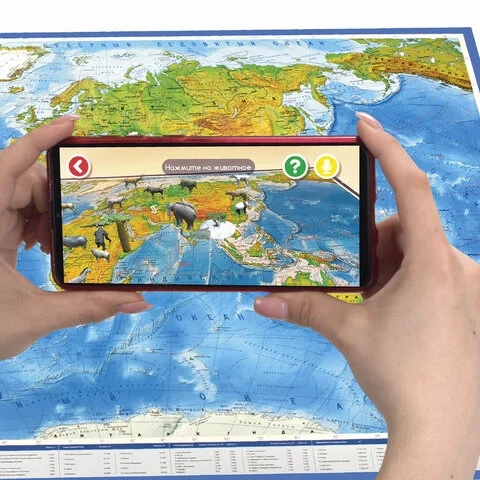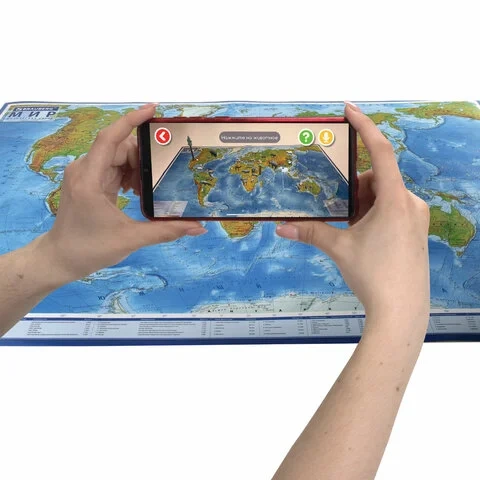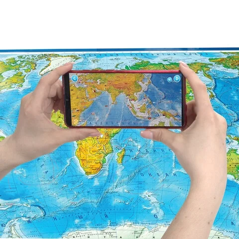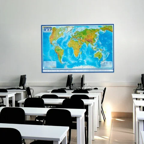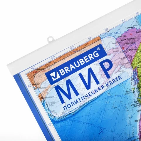 Карта мира физическая 'Полушария' 101х69 см, 1:37М, интерактивная, европодвес, BRAUBERG, 112375