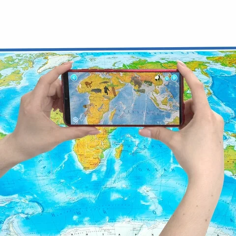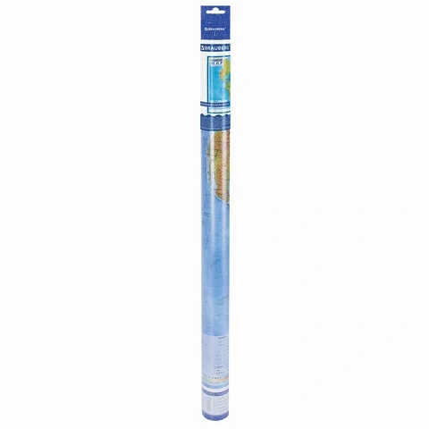 Карта мира физическая 'Полушария' 101х69 см, 1:37М, интерактивная, в тубусе, BRAUBERG, 112376