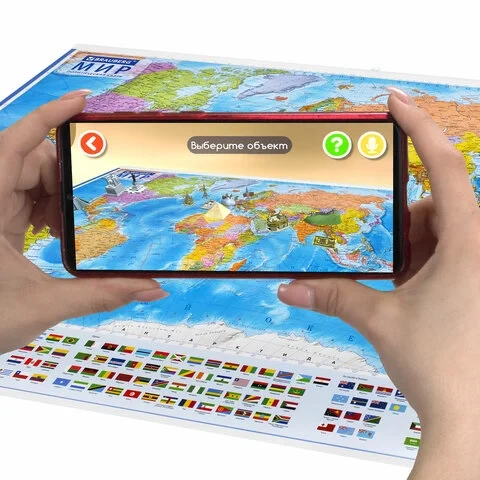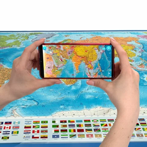 Карта мира политическая 199х134см, 1:15,5М, с ламинацией, интерактивная, европодвес, BRAUBERG, 11238