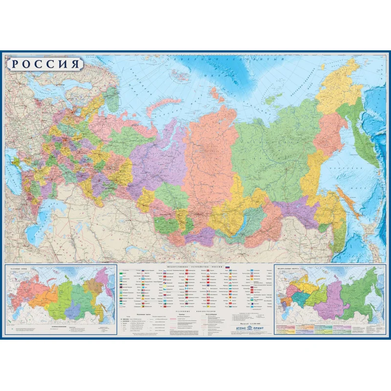 Настенная карта Атлас Принт Россия политико-административная, М-1:5 500 000, 158х118см