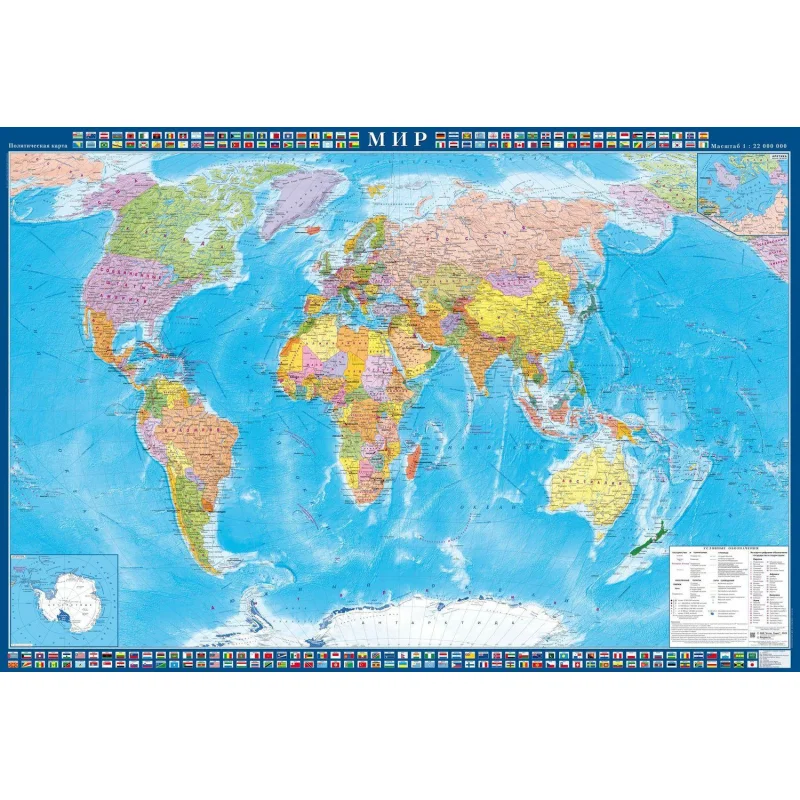Настенная карта Атлас Принт Мир политическая, М-1:22 000 000, 157х105см