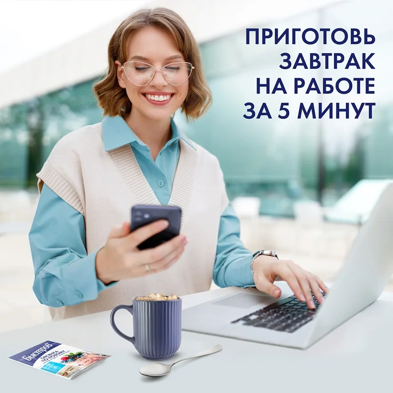 Надоела обычная овсяная каша? Овсянка по-новому Быстров – отличная альтернатива овсяной каше для энергичного утра! Овсянка по-новому от Быстров - это современный завтрак с овсяными хлопьями и с кусочками фруктов и ягод, приготовленный новым необычным способом. Нужно лишь смешать Овсянку с йогуртом, ряженкой или кефиром, подождать 5 минут и нежнейшая Овсянка по-новому готова. В составе только 100% натуральные ингредиенты. Основой являются овсяные хлопья из цельных злаков, в которых сохранены все полезные компоненты овсяного зерна (оболочка, эндосперм и зародыш), а значит и полезные свойства. Каждая порция овсянки является источником пищевых волокон (клетчатки), необходимых для здорового пищеварения. Спелые отборные кусочки ягод фруктов проходят процесс быстрой заморозки, а затем под вакуумом из них удаляется влага. Данный метод позволяет сохранить структуру, цвет и вкус свежих ягод. Полезные семена льна и чиа являются источниками белка и кальция, а также они богаты пищевыми волокнами, способствующими пищеварению. Быстров - начни утро с пользы!