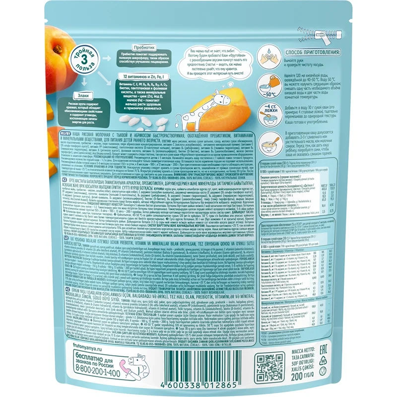 | Особенности состава | без гмо; без искусственных консервантов; без искусственных красителей; с витаминами; с пребиотиком |