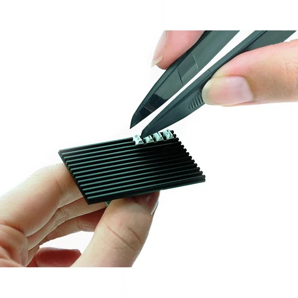 Меньший размер букв и цифр позволяет набрать большее количество слов на штампе. В комплект входит пинцет для набора символов, что облегчает работу с материалом.
