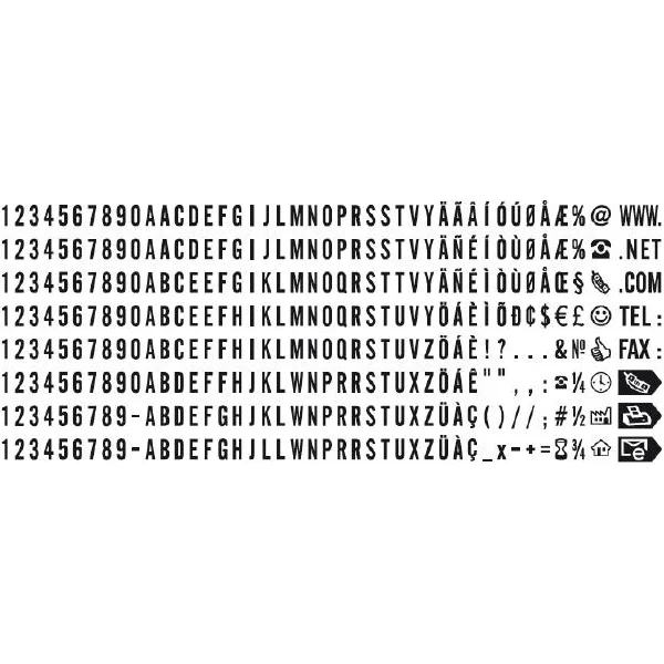 Касса латинских букв цифр и символов Trodat 336 символов, 3мм, 6003