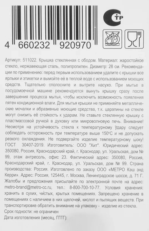 METRO PROFESSIONAL Крышка нержавеющая сталь, 28см