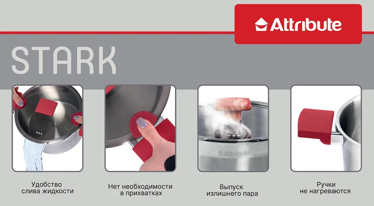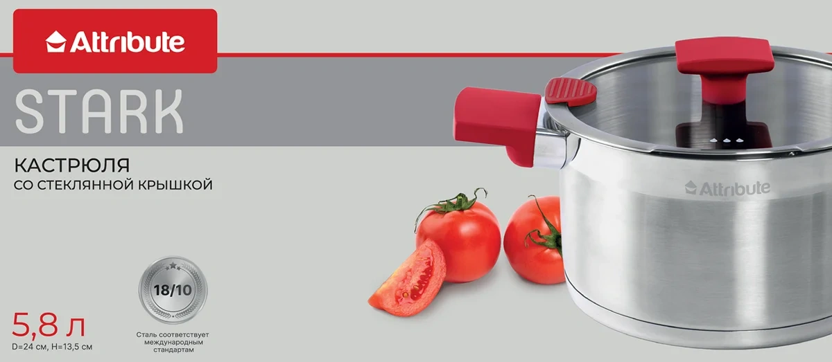 Кастрюля с крышкой Attribute Stark 5.8л, 24см