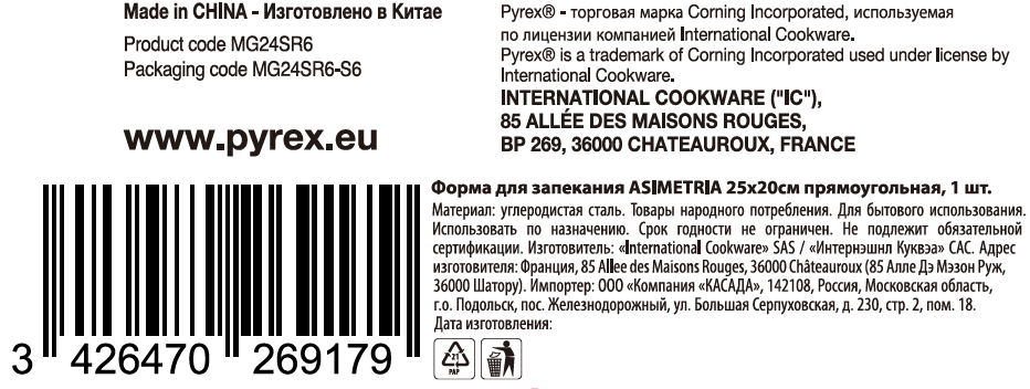 Форма для запекания Pyrex Asimetria прямоугольная, 40 x 31см