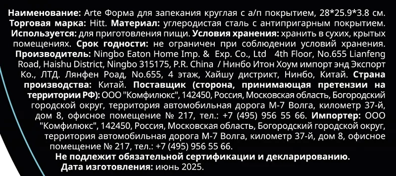 Форма для пирога Hitt Arte стальная, 28 x 25.9 x 3.8см